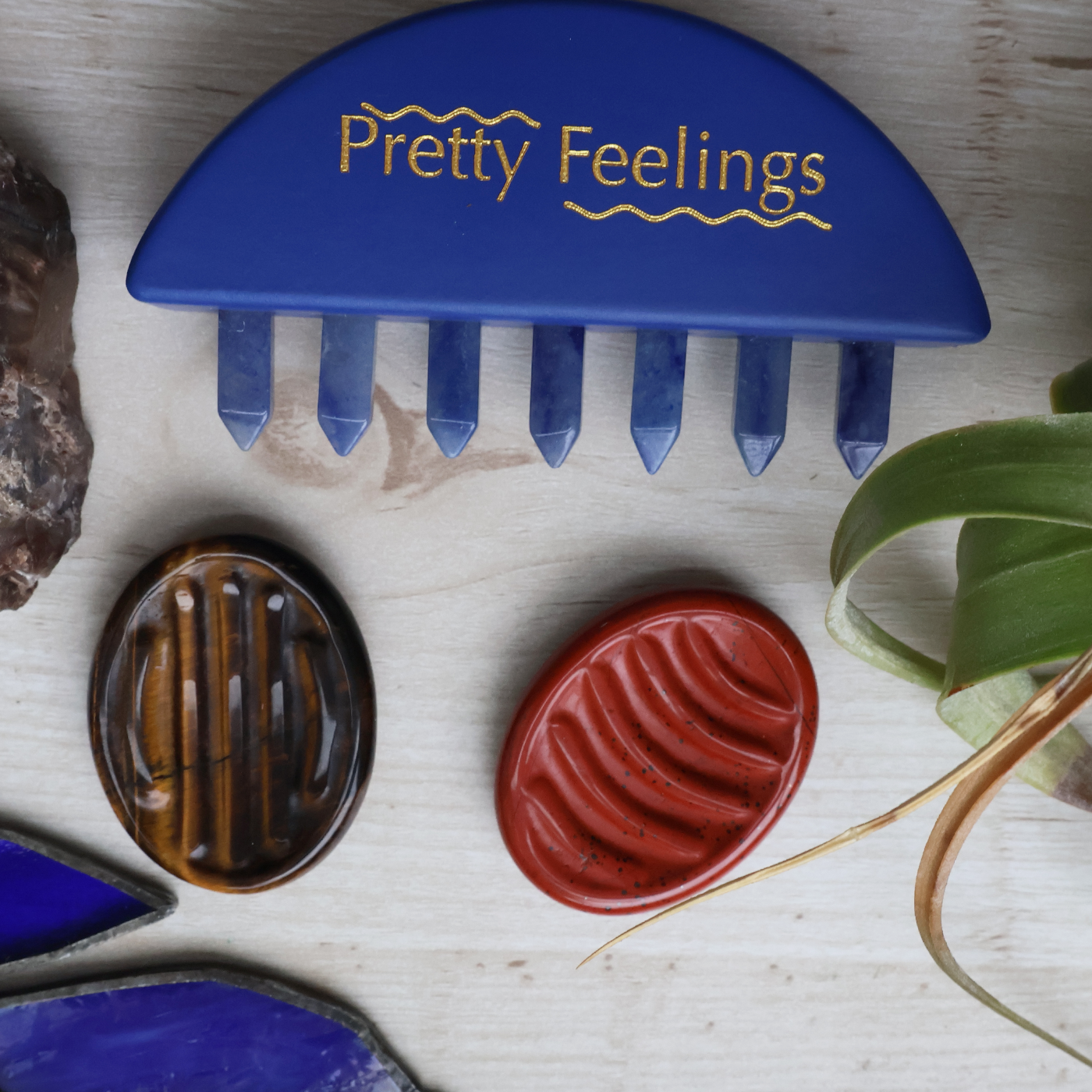 Pretty Feelings packs are curated to provide you with a tailored relaxation experience at a discounted price. Each pack contains one gemstone scratcher and two worry stones.